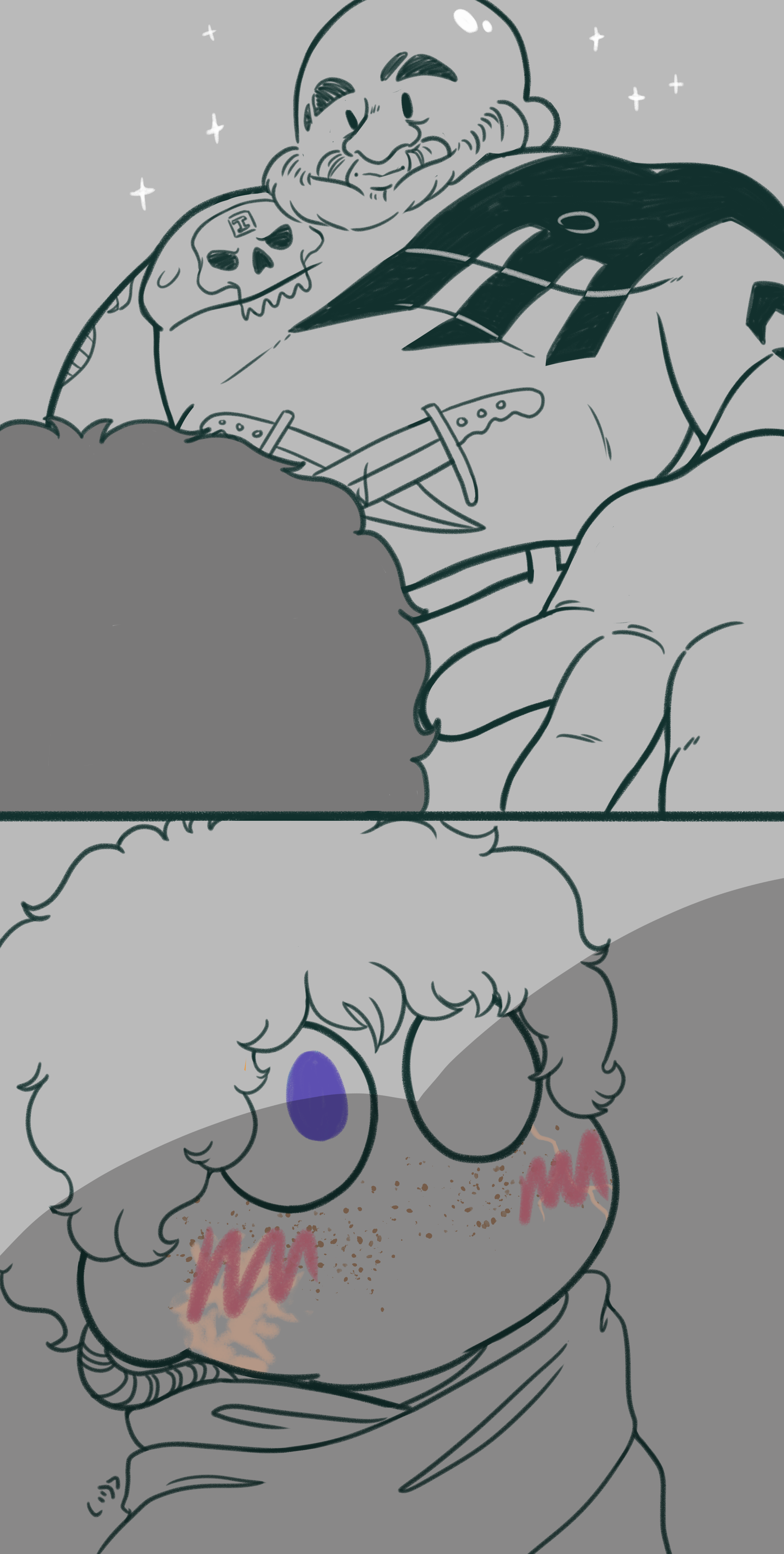 While their expression often lingers on a look of tiredness or worldweariness and changes only subtly around most even in moments of anger or fear, they are much more relaxed and expressive around those they trust and whose company they enjoy. Regardless of who's around them they are also noted to be quick to laugh at even the worst jokes and puns you've ever heard in your life; if they are fond enough of you they will subject you to their own awful, stupid jokes as well, laughing uncontrollably the entire time. For their carefully crafted outward appearance of being calm and collected, even very gentle teasing for things like their genuine and heartfelt appreciation for another person causes them to become intensely flustered and painfully shy.