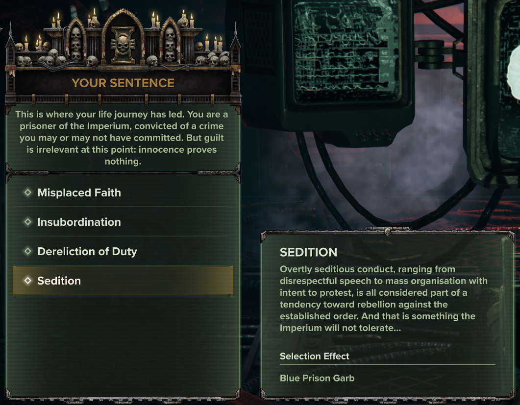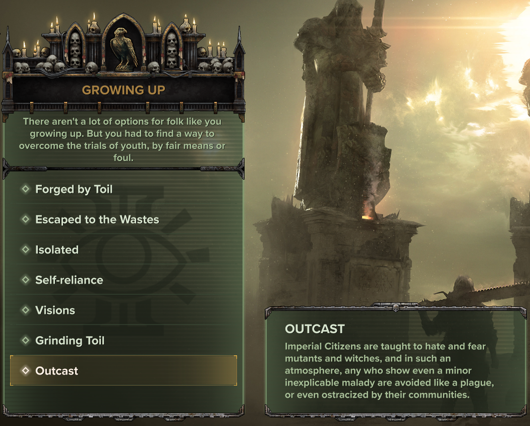 main in-game Darktide outfit rogue trader mercenary by psyker kitty alt outfit 1 alt outfit 2 alt outfit 3 character creation: home world character creation: childhood character creation: growing up character creation: defining moment character creation: sentencing