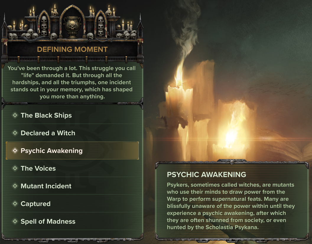 The idle interest of one of Silver's evaluators is all that saved them. Their initial assessment found their personality to be weak and lacking the willpower to safely control such a highly tempestuous and challenging warp connection; a surprise and disappointment, to have received such a mild, soft psyker from a planet like Cadia. And yet the glimmer of something more was seen in them that piqued the curiosity of the most seasoned of those deciding Silver's fate, resulting in a short back-and-forth argument with the others. There was a neverending number of psykers to evaluate, what did it matter if this one was exalted to power the Astronomican? Why bother wasting this much time to argue for any one of them, especially one so potentially dangerous? Yet the lone objector was adamant Silver might be willful enough to be actually useful, and refused to relent until the rest reluctantly agreed to allowing Silver to enter the sanctioning process, reminding them that Silver would be executed anyway should they fail any single step.