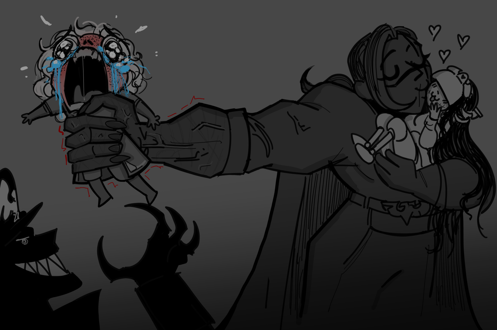 (wip! this guy is so lowkey fucked up i'm so excited to write him :3 but he's spent the entire time he's had silver under his command slowly becoming completely consumed by a dark obsession with them, which culminates in him acting on his obsessions. i haven't decided the -exact- turn of events that happen after this but it's something like his otherwise exemplary career as a commissar sees his misconduct brushed under the rug -- with the exception of having the cause for his misconduct removed from his regiment under suspicion of "heresy" and sent to die in a penal battalion. they barely had to make anything up to accuse silver of heresy though lmao their entire personality is basically considered heresy and they struggle to hide who they really are under the veil of politeness :-) anyway needless to say removing silver from his control does not lessen his obsession with them and he becomes utterly devoured by the burning need to collect them again before they're killed...)