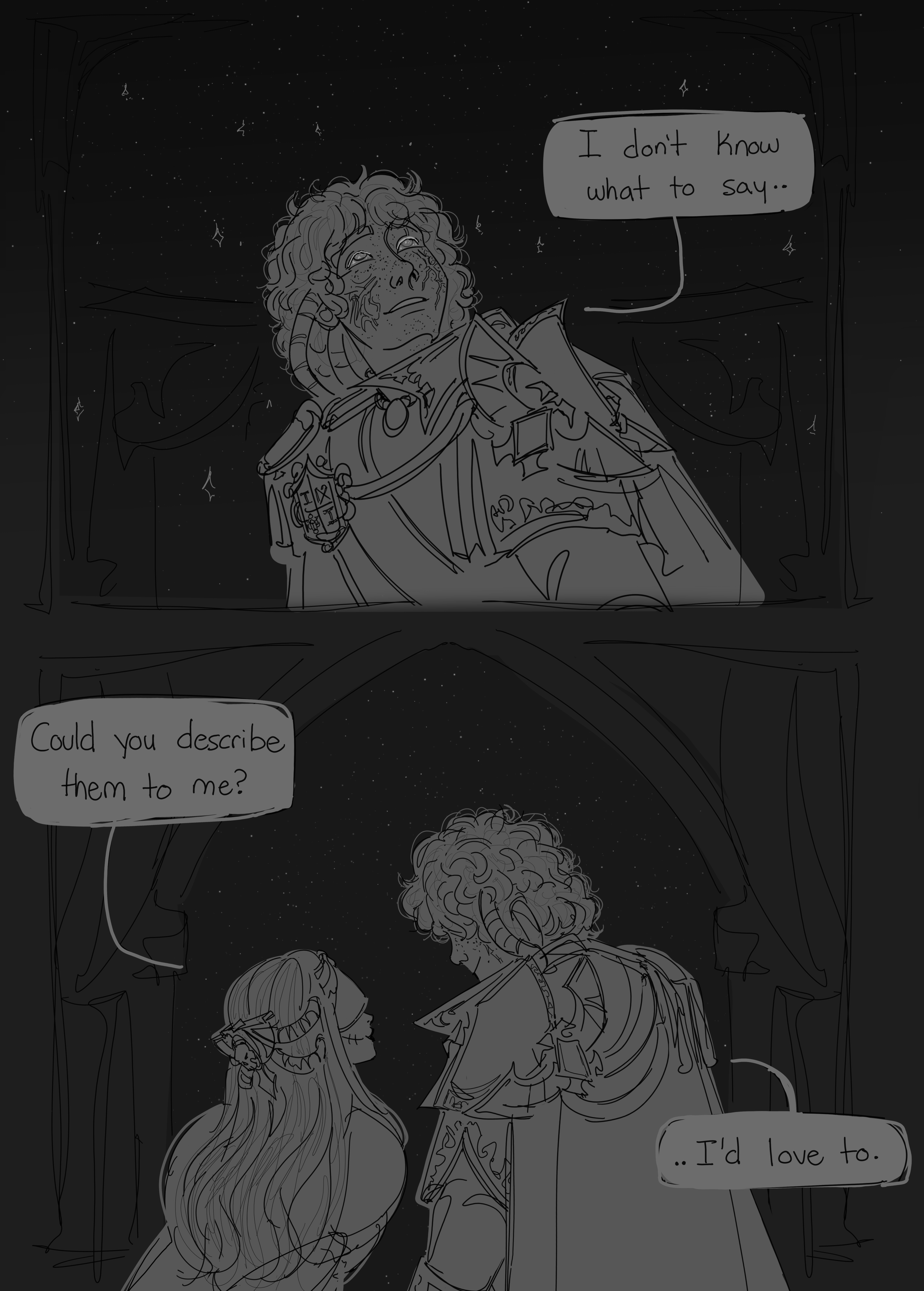 And Radiance giggled again, telling them Silver was a lovely name as well, which only made Silver's entire face flush red a second time that evening and their warp aura flare with shyness. Though they were finally found and hurried off the ship by one of their highly annoyed superiors, who proceeded to lambaste Silver for lagging behind and wasting their time, Silver found themself only able to hear the gentle laughter of Radiance bidding them goodnight ringing in their mind.